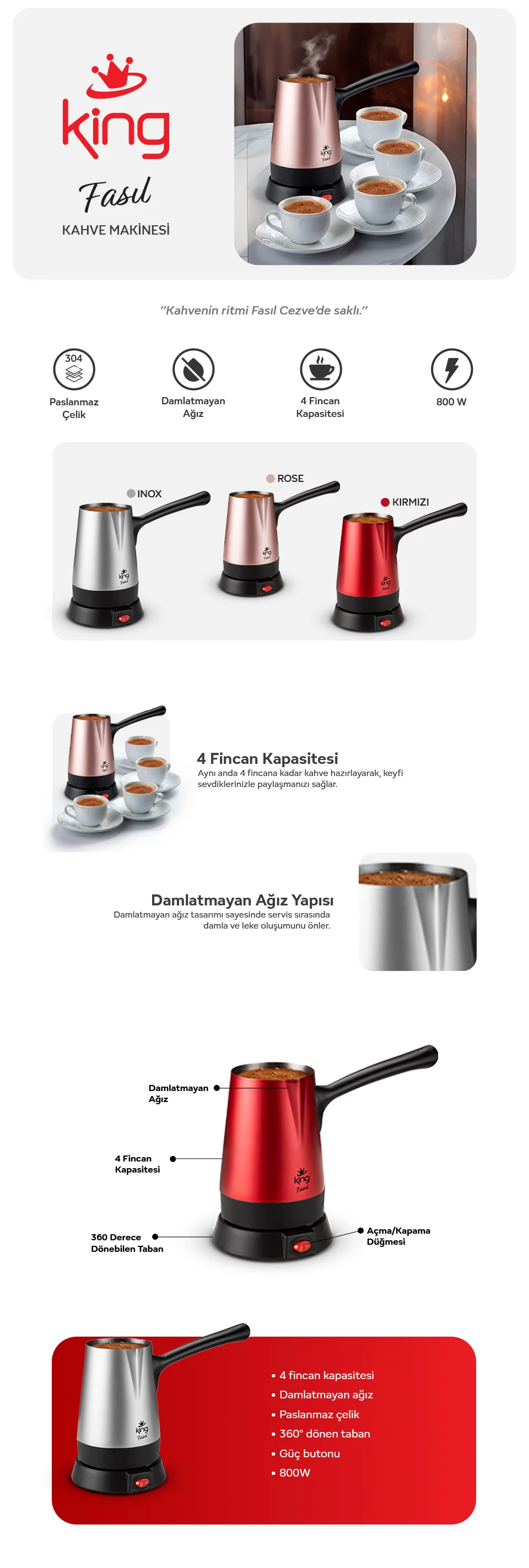 King Fasıl Kahve Makinesi-Rose Gold