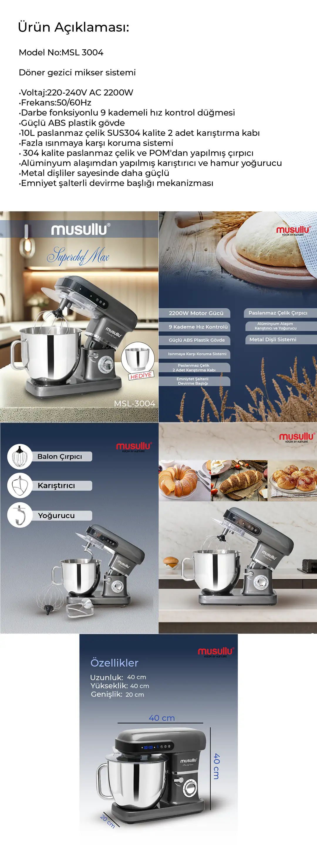 Musullu Superchef Max 10 Litre 2200 Watt Mutfak Şefi/ Stand Mikser Hamur Yoğurma Makinesi